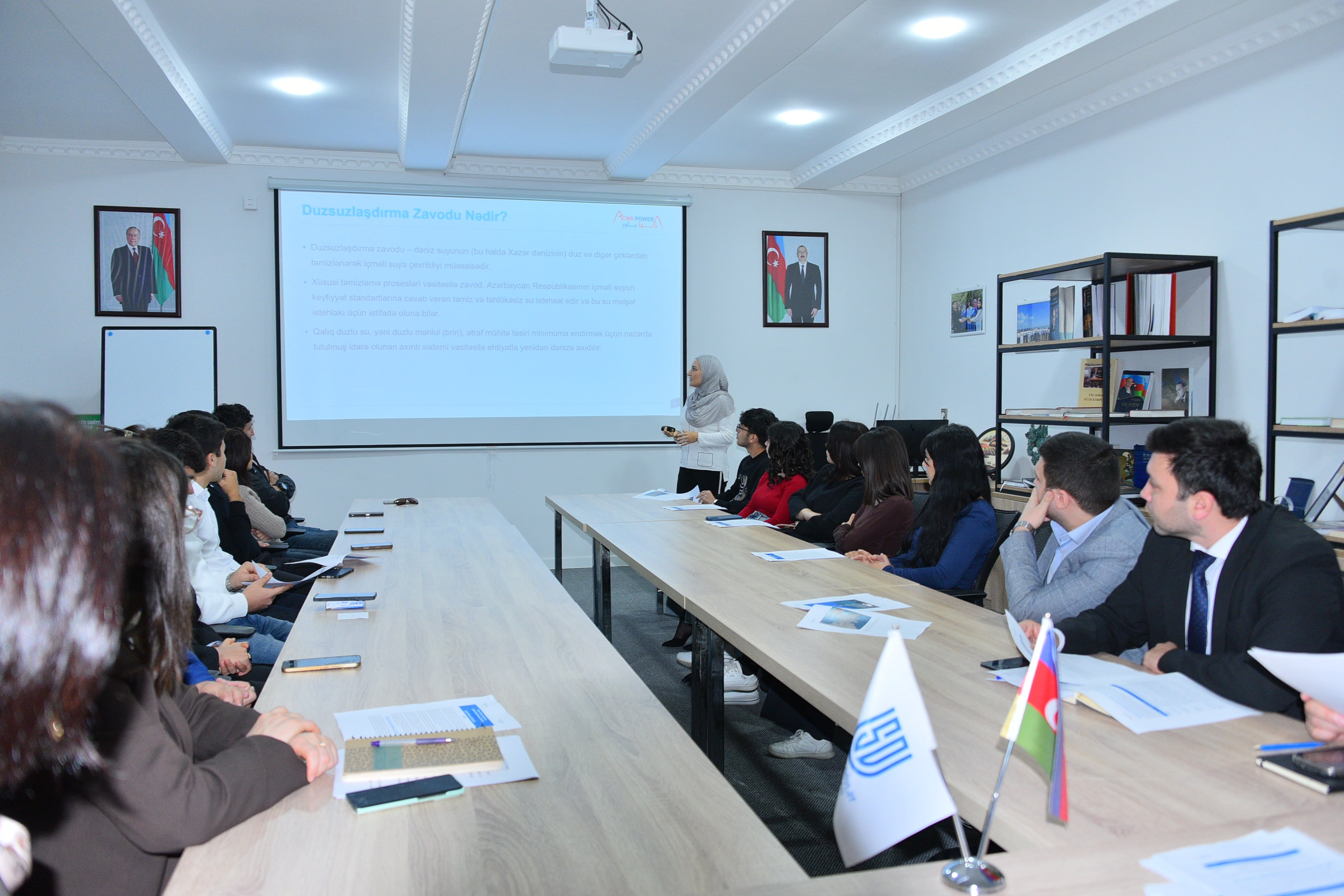 Dekabrın 19-da Sumqayıt Dövlət Universitetində Səudiyyə Ərəbistanı Krallığının “ACWA Power” şirkəti tərəfindən Sumqayıt şəhərində inşa edilməsi planlaşdırılan “Xəzər dəniz suyunun duzsuzlaşdırılması zavodu” layihəsinə həsr olunmuş geniş təqdimat və müzakirə təşkil edilib.
