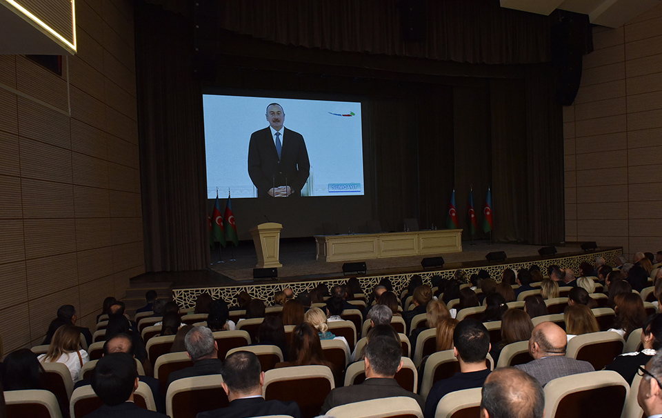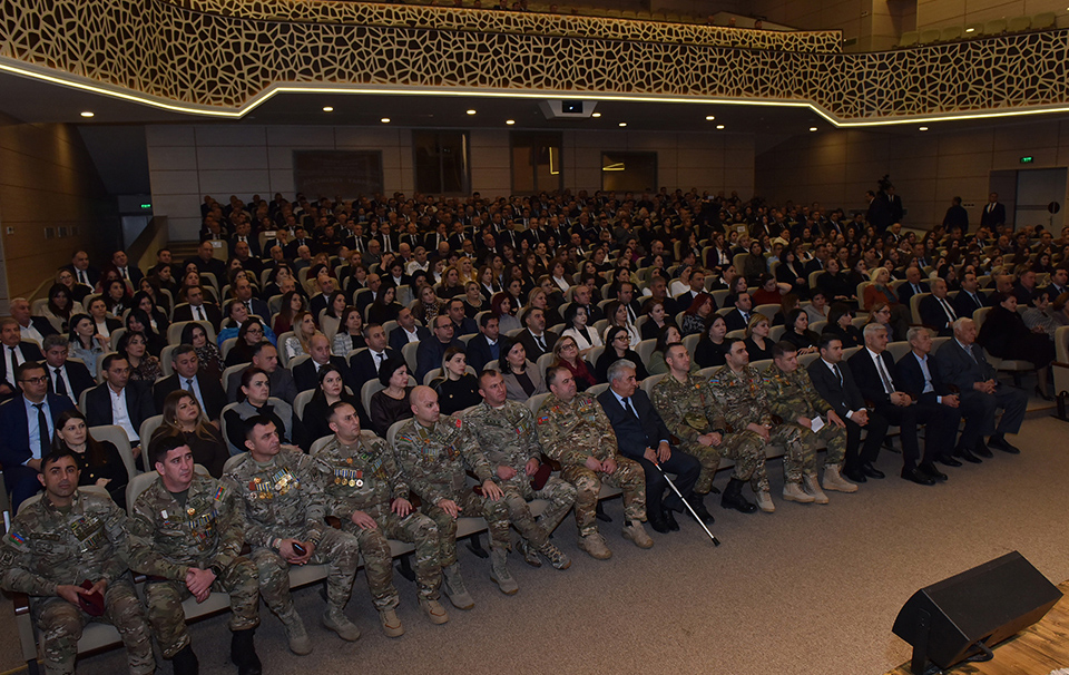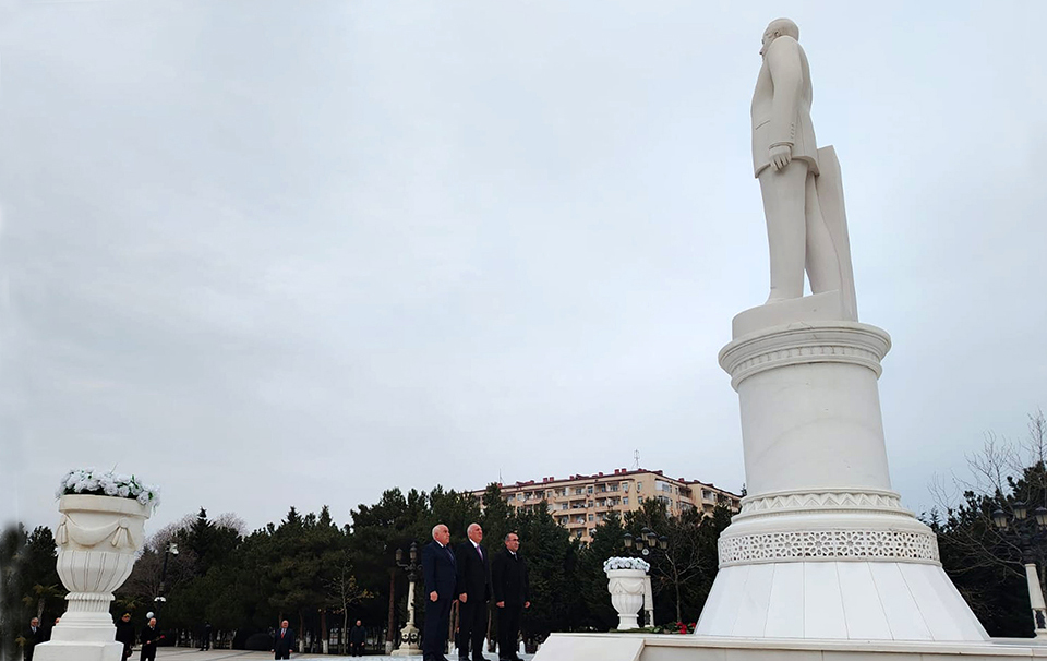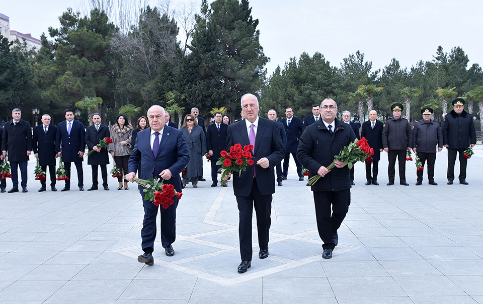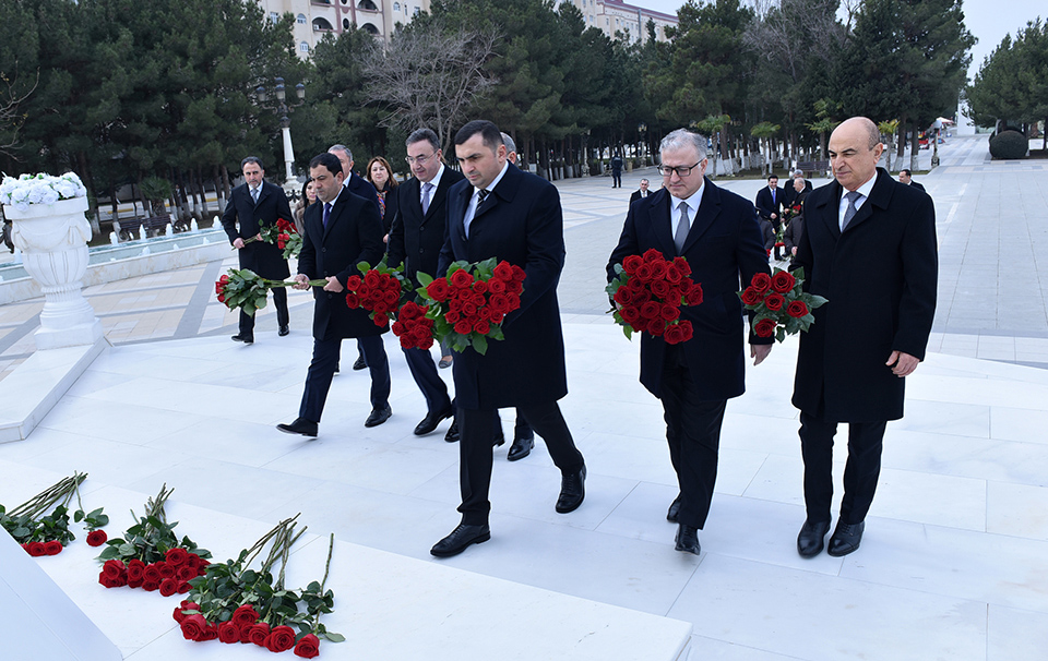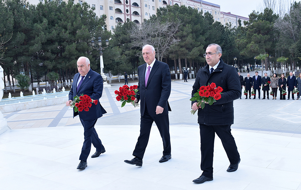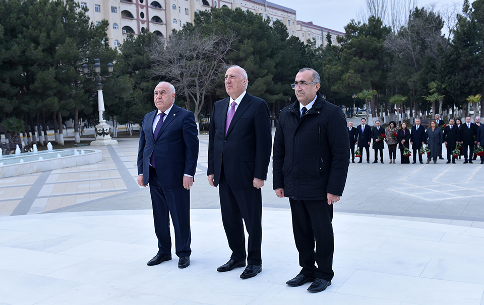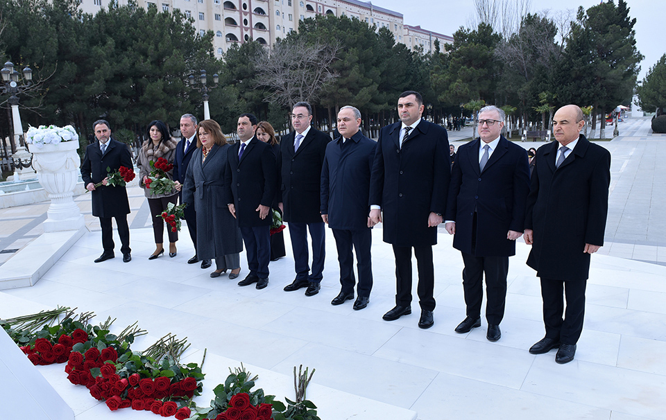 Tədbir iştirakçıları əvvəlcə Ümummilli Lider Heydər Əliyevin abidəsini ziyarət edib, önünə gül dəstələri düzərək, xatirəsinə ehtiramlarını bildiriblər.