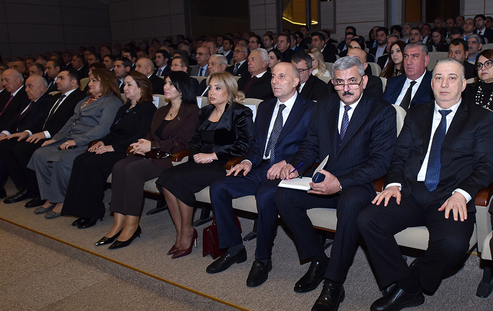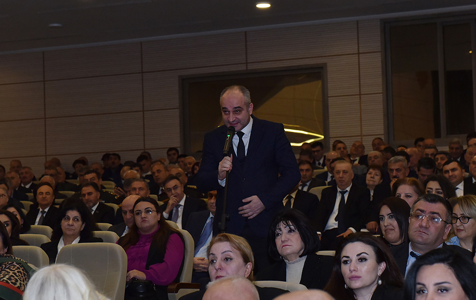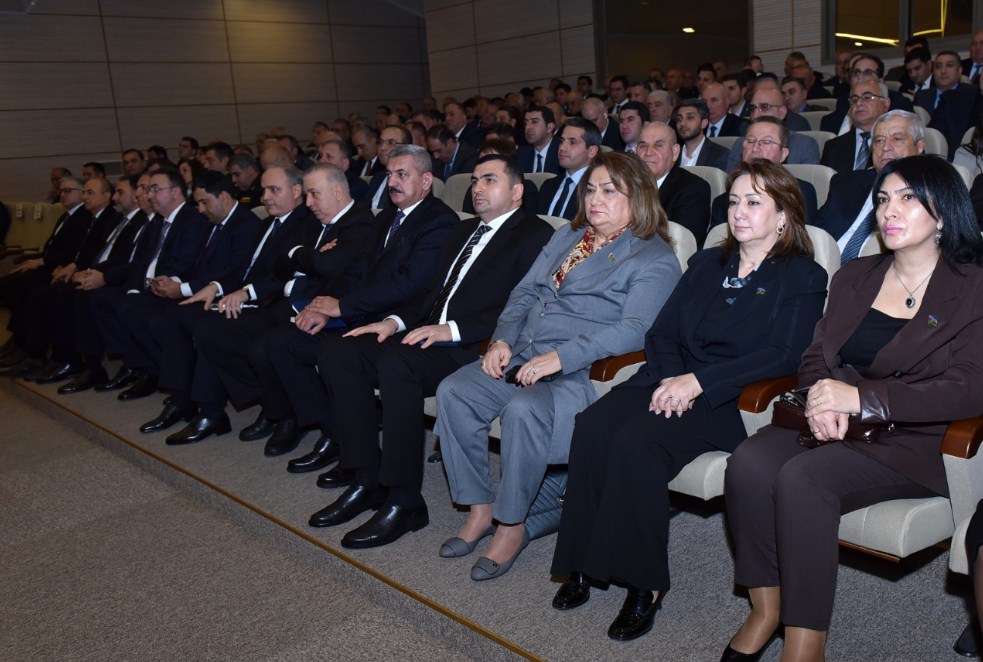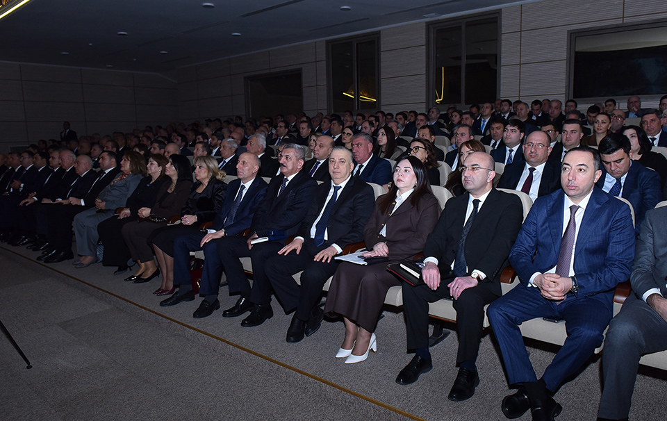 Azərbaycan Respublikası Prezidentinin Administrasiyasının Ərazi-təşkilat məsələləri şöbəsinin 3-cü ərazi sektorunun müdiri Vəfadar Bağırov çıxış edərək Prezident İlham Əliyevin rəhbərliyi ilə həyata keçirilən ardıcıl və məqsədyönlü dövlət siyasəti nəticəsində 2025-ci ildə ölkəmizdə bütün sahələrdə mühüm nailiyyətlərin əldə olunduğunu, genişmiqyaslı quruculuq işlərinin aparıldığını, sosial-iqtisadi inkişafın və əhalinin sosial rifahının yüksəldiyini vurğulayıb. O, beynəlxalq münasibətlər sistemində Azərbaycanın mövqelərinin daha da möhkəmləndiyini qeyd edərək, Prezident İlham Əliyevin müəyyən etdiyi strateji islahatlar, qarşıda duran yeni hədəflər və şəhərin gələcək fəaliyyətinə dair prioritet istiqamətlər barədə ətraflı məlumat verib.