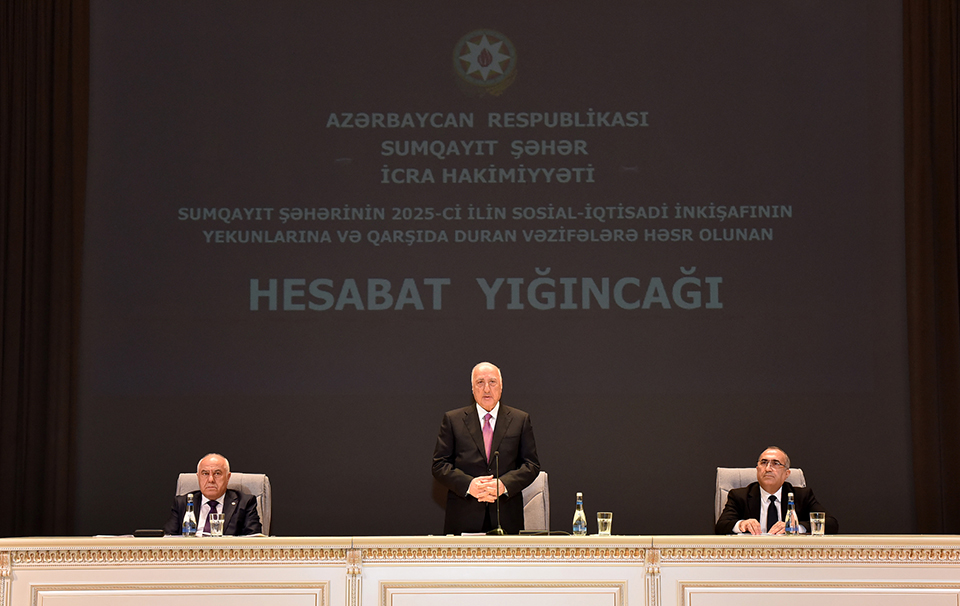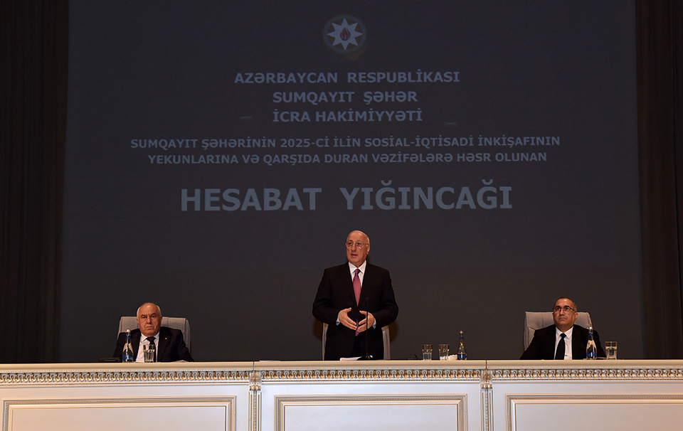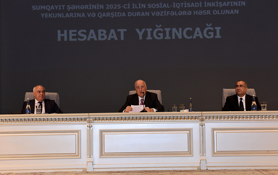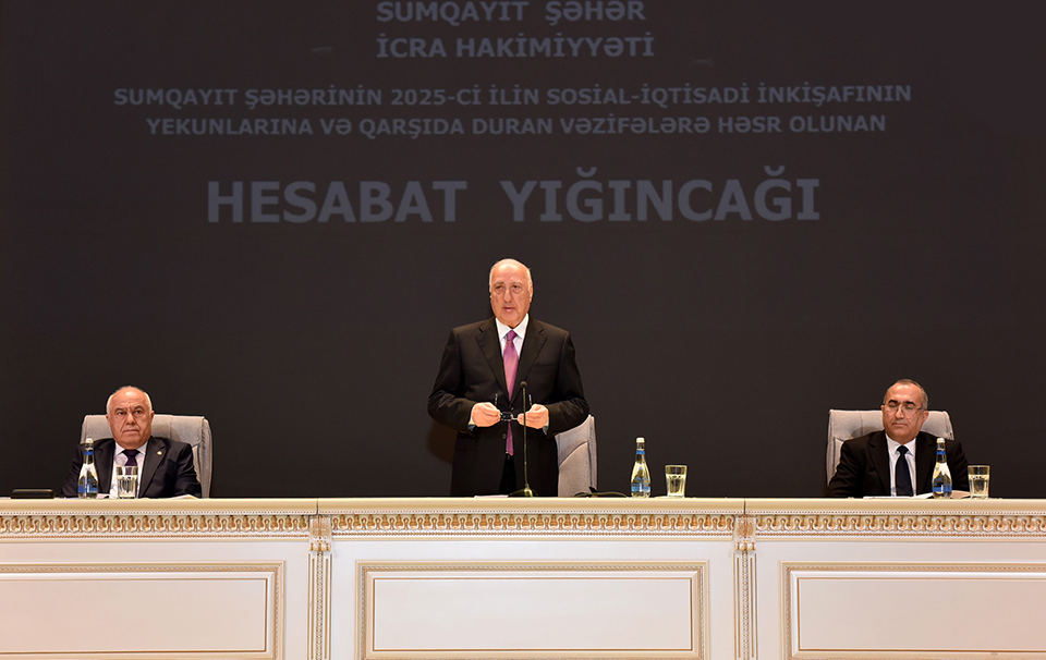 Sumqayıt Şəhər İcra Hakimiyyətinin başçısı Zakir Fərəcov hesabat məruzəsində bildirib ki, qürur və iftixar hissi ilə başa vurduğumuz “Konstitusiya və Suverenlik ili” olan 2025-ci il ölkəmiz, xalqımız və şəhərimiz üçün bol uğurlarla yadda qalıb. 2025-ci il Azərbaycanın müasir tarixində artıq müharibədən sonra yalnız bərpa mərhələsi kimi deyil, şanlı Zəfərimizin tam legitimləşdirildiyi, suverenliyin beynəlxalq miqyasda möhkəmləndiyi və dövlətimizin yeni güc mərhələsinə keçdiyi il kimi dəyərləndirilir.