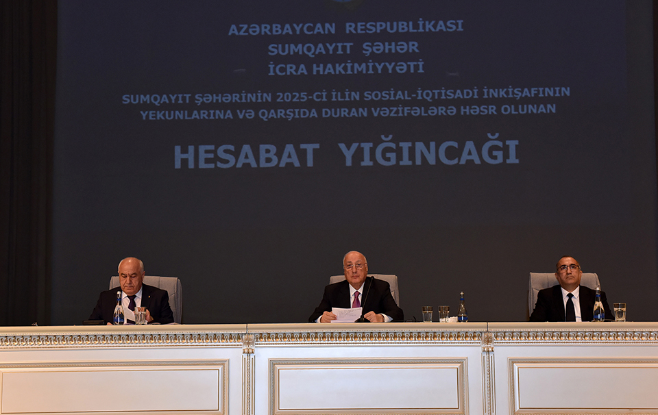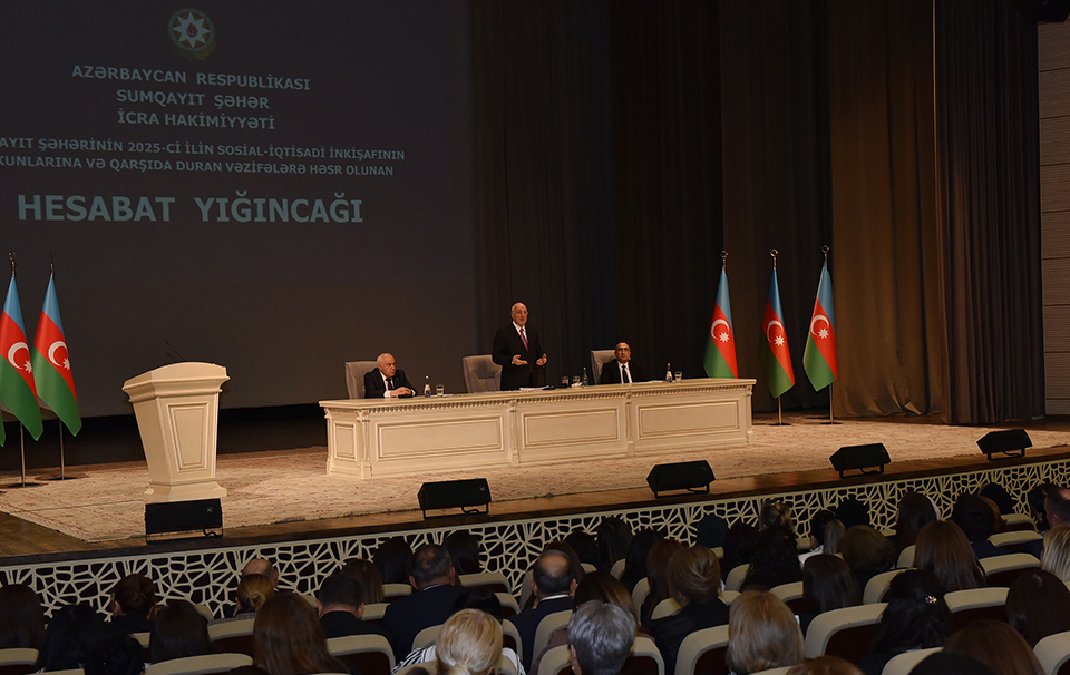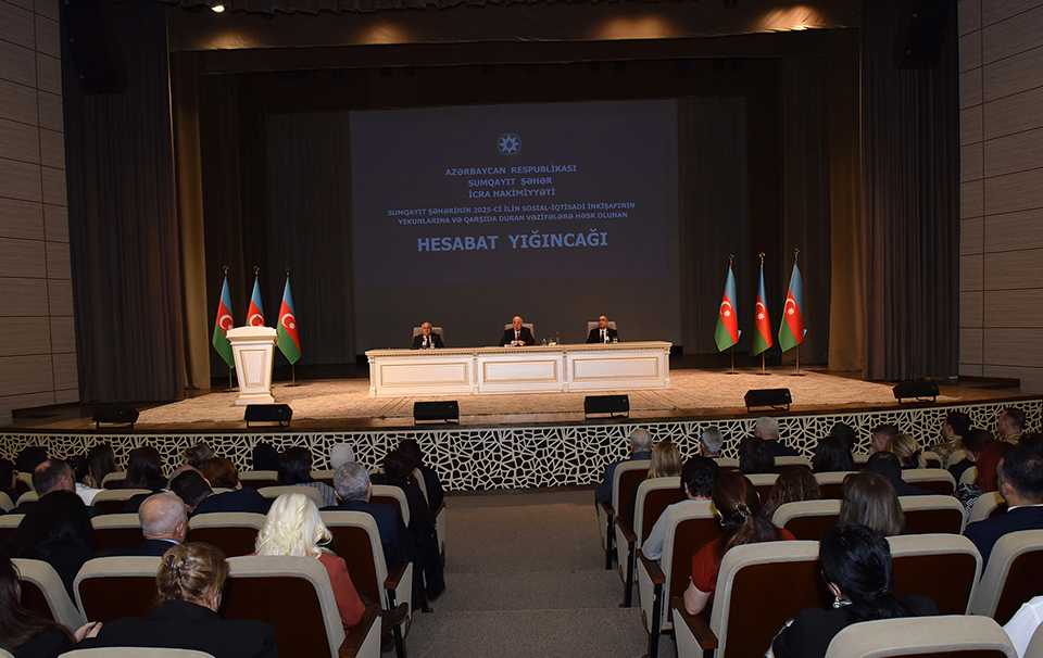 Sumqayıt şəhərinin 2025-ci ilin sosial-iqtisadi inkişafının yekunlarına və qarşıda duran vəzifələrə həsr olunmuş hesabat yığıncağı keçirilib.
