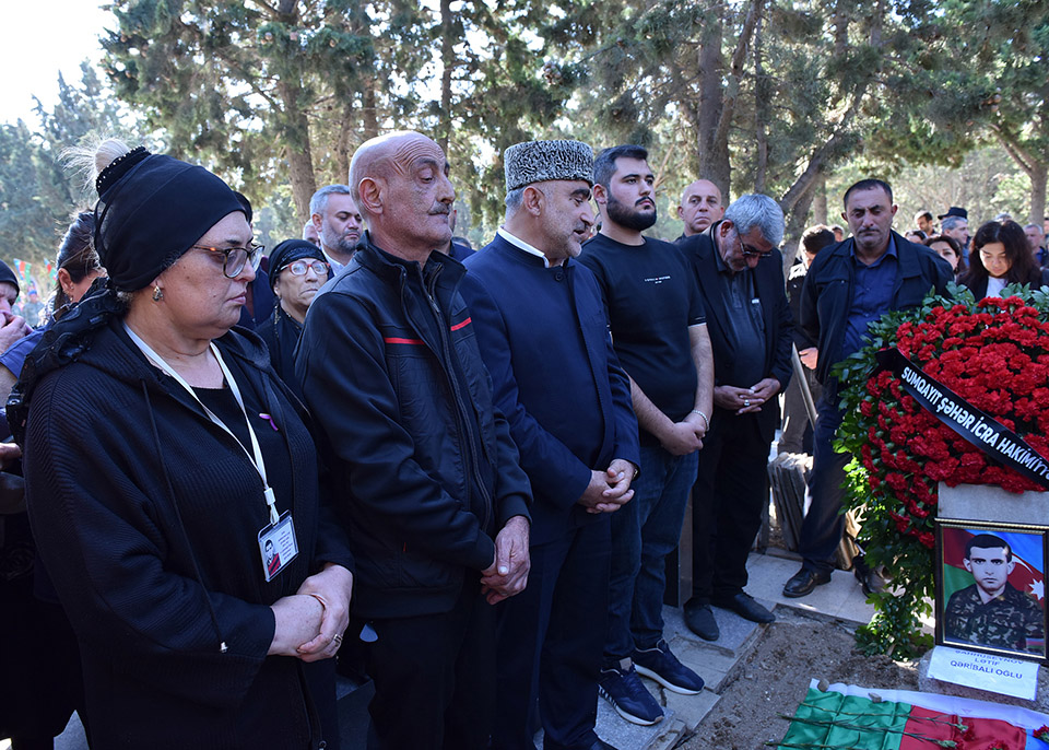 Dəfn mərasimində şəhidin doğmaları, Sumqayıt Şəhər İcra Hakimiyyətinin başçısı Zakir Fərəcov, hüquq-mühafizə orqanlarının rəhbərləri, hərbçilər və ictimaiyyət nümayəndələri iştirak ediblər.