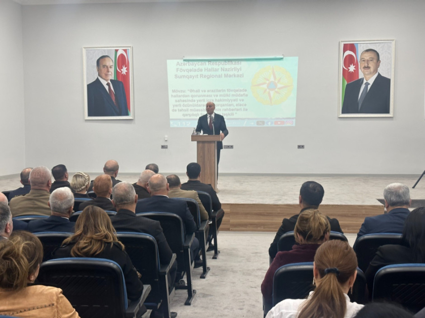 Sonra Sumqayıt Regional Mərkəzinin rəisi polkovnik Vaqif Fətullayev keçirilən müşavirənin əhəmiyyətindən danışıb, mülki müdafiə işinin təşkili ilə bağlı birgə fəaliyyətin vacibliyini vurğulayıb.