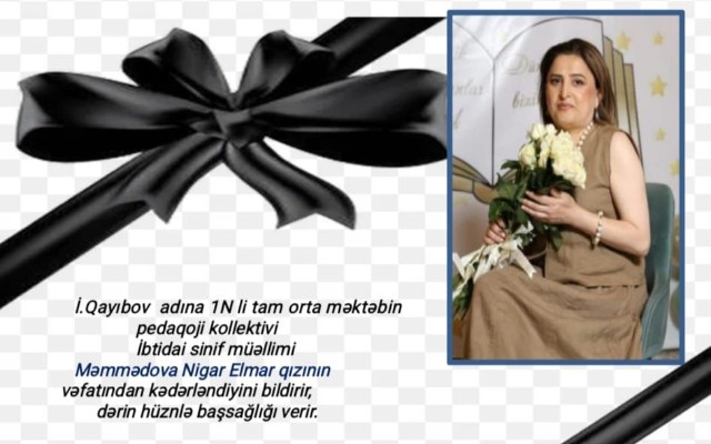sumqayitxeber.com xəbər verir ki, İsmət Qayıbov adına 1 nömrəli tam orta məktəbin ibtidai sinif müəllimi Nigar Elmar qızı Məmmədova vəfat edib.