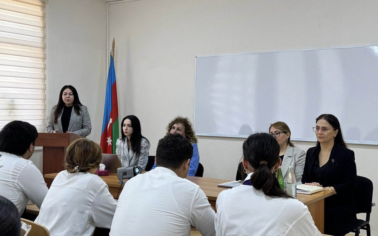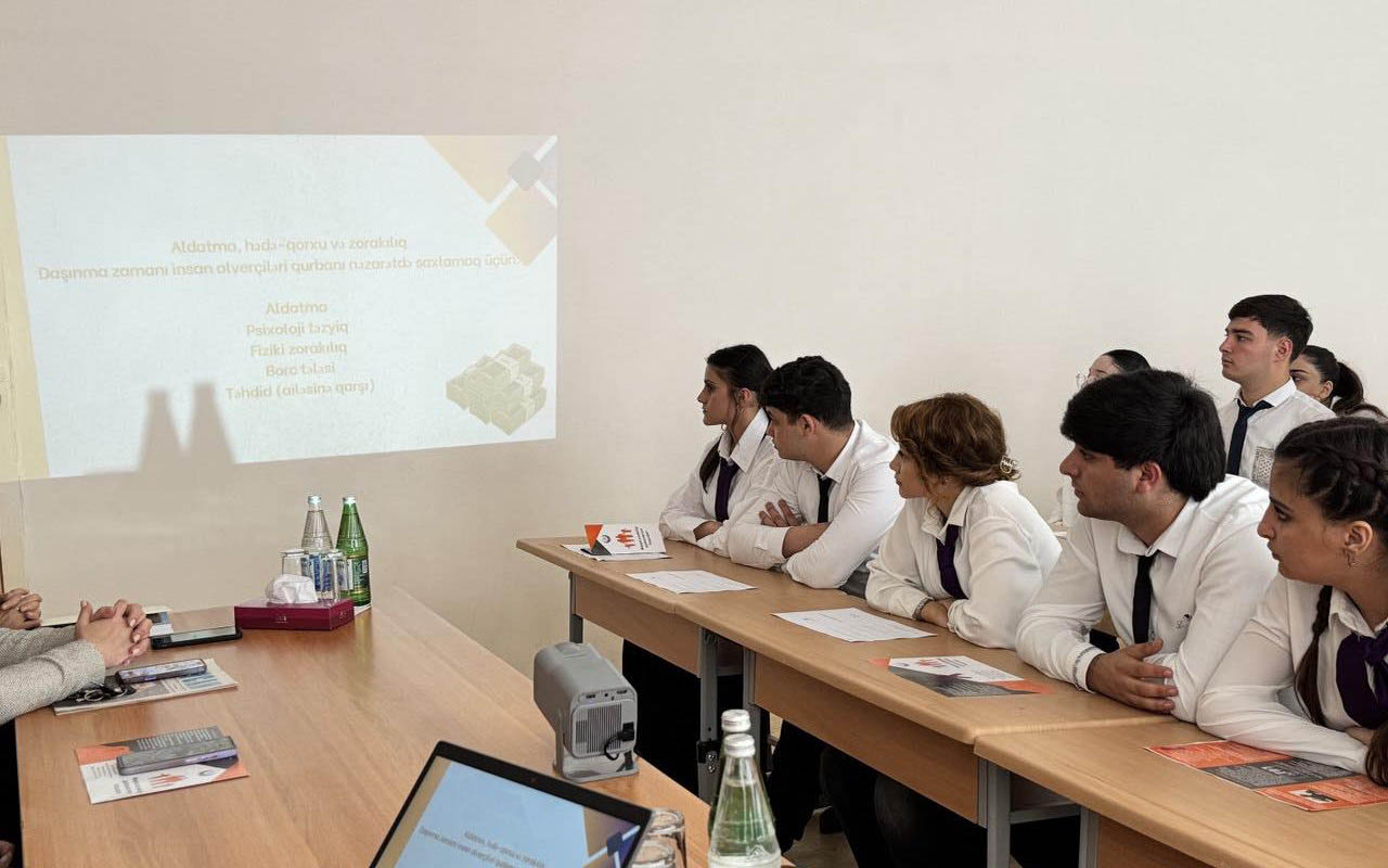 Tədbiri giriş sözü ilə açan mərkəzin direktoru Gülşən Ömərova tələbələrə görüşün əhəmiyyətindən bəhs edərək, insan alveri və məişət zorakılığı ilə mübarizə sahəsində maarifləndirici tədbirlərin gənclər arasında məlumatlılığın artırılması baxımından xüsusi rol oynadığını vurğulayıb.