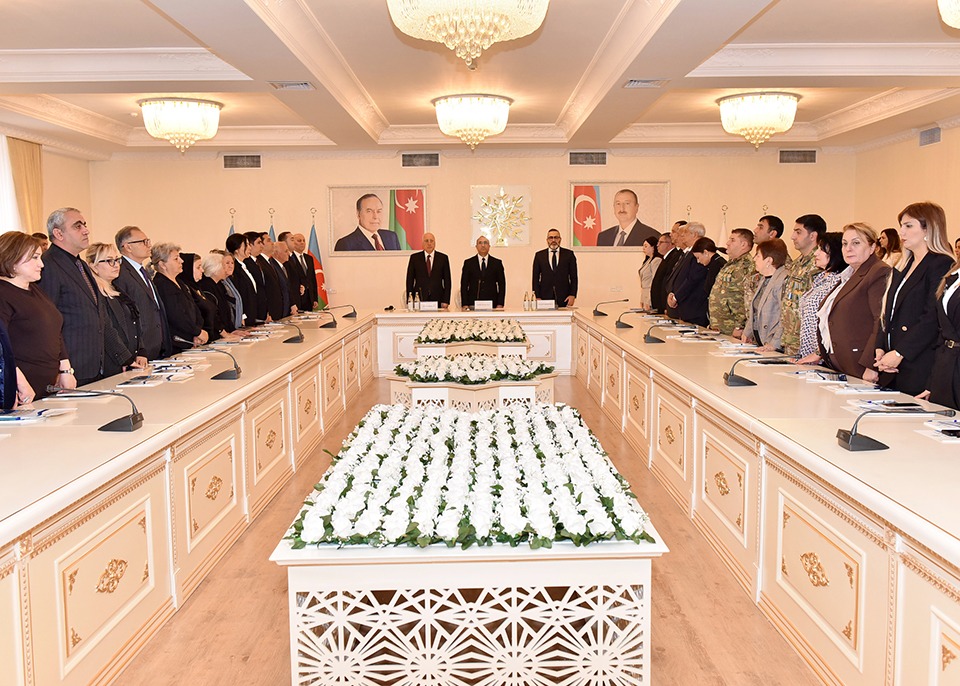Əvvəlcə Azərbaycan Respublikasının Dövlət Himni səsləndirilib, Vətən uğrunda canından keçmiş şəhidlərin əziz xatirəsi bir dəqiqəlik sükutla yad edilib.