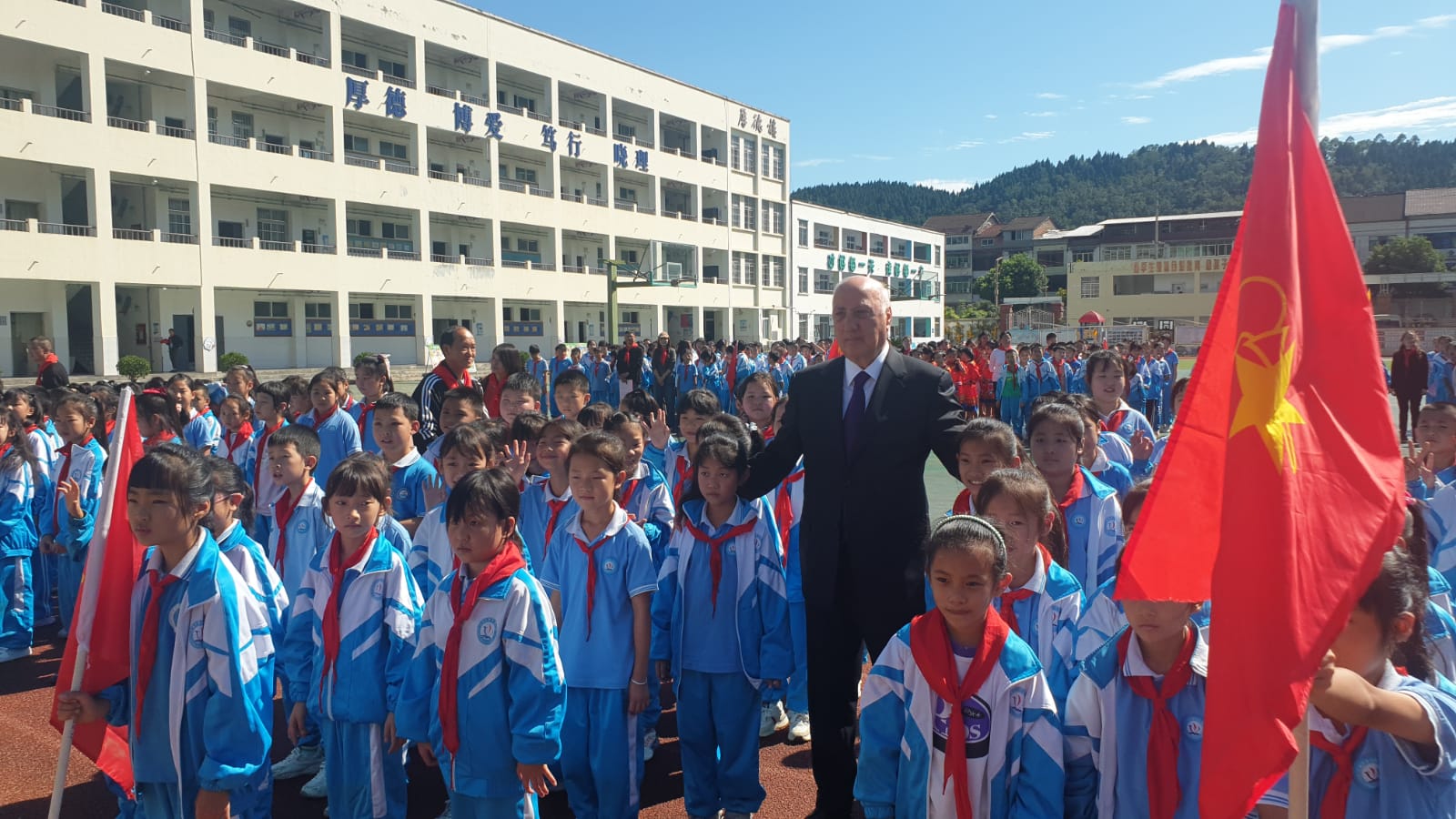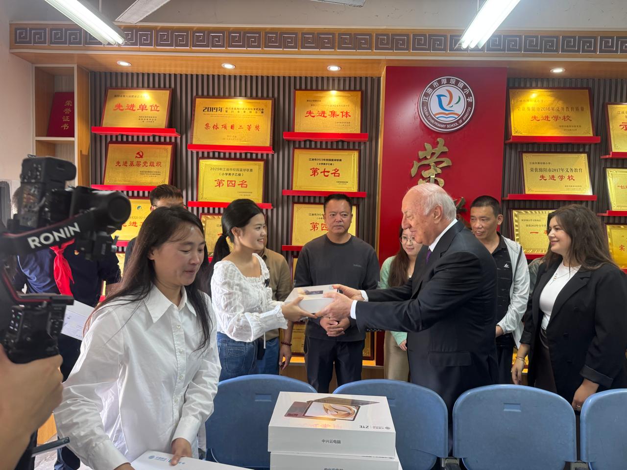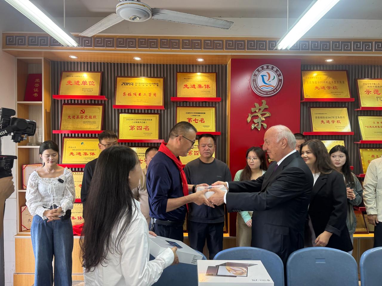 Məktəbdə keçirilən görüş zamanı Zakir Fərəcov şagirdlər və pedaqoji kollektivlə səmimi söhbət aparıb, Azərbaycan xalqının dost Çin xalqına olan hörmət və ehtiramını çatdırıb. Prezident İlham Əliyevin adından məktəbə kompüterlər hədiyyə olunub. Şəhər rəhbərliyi göstərilən diqqət və qayğıya görə Prezidentə minnətdarlığını ifadə edib və nümayəndə heyəti rəhbərindən Onun salamlarını çatdırmağı xahiş edib.