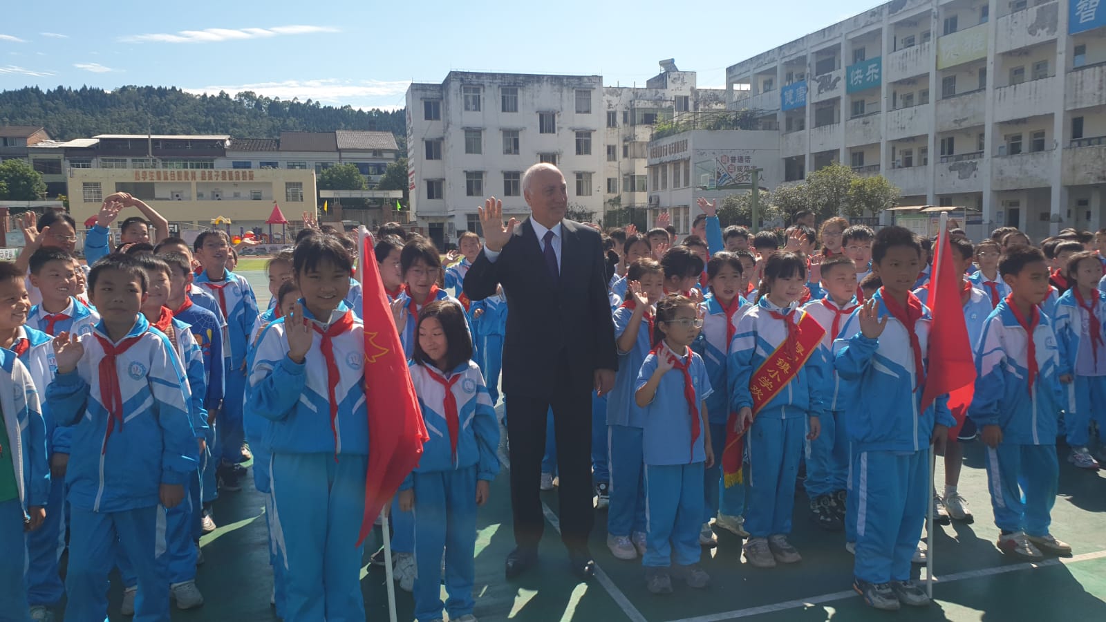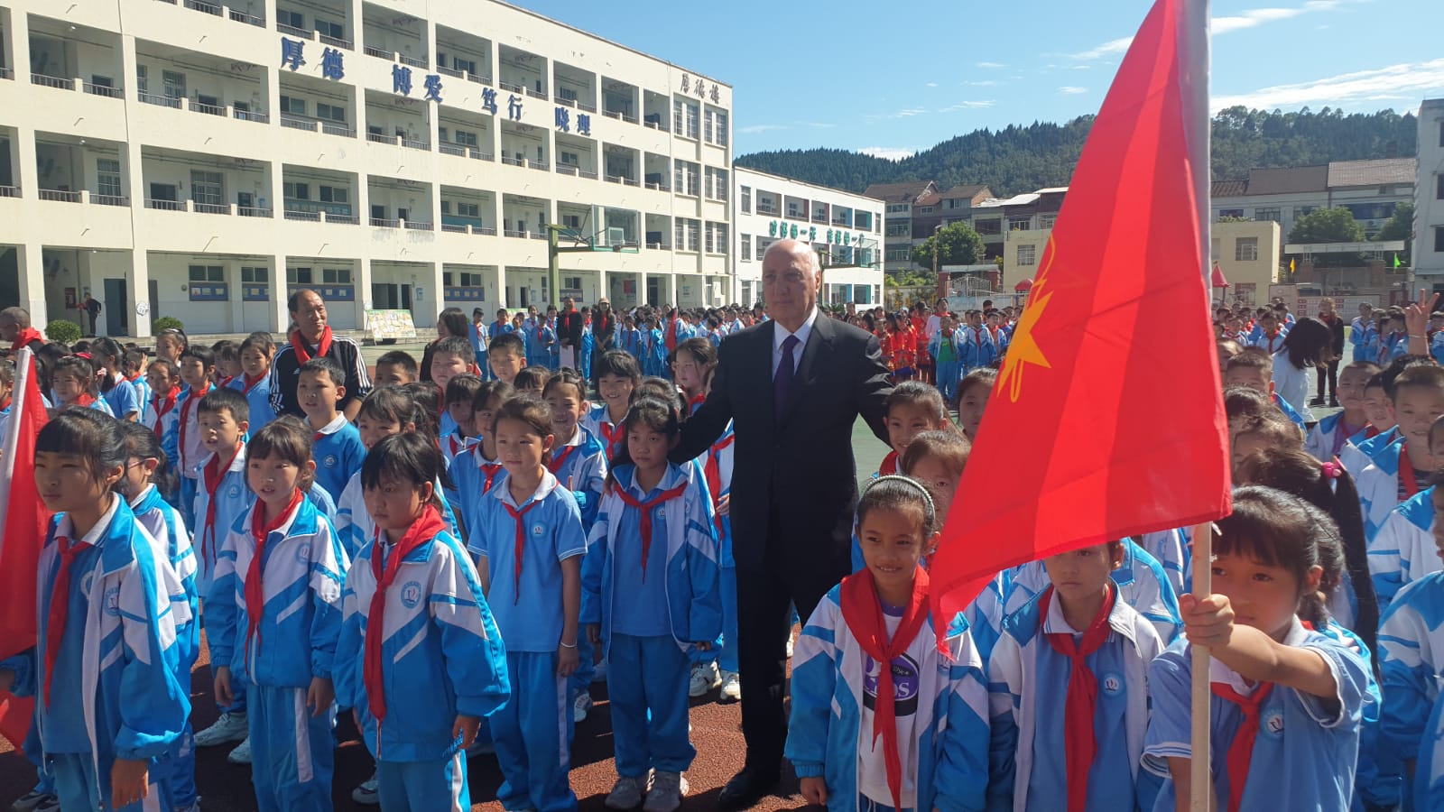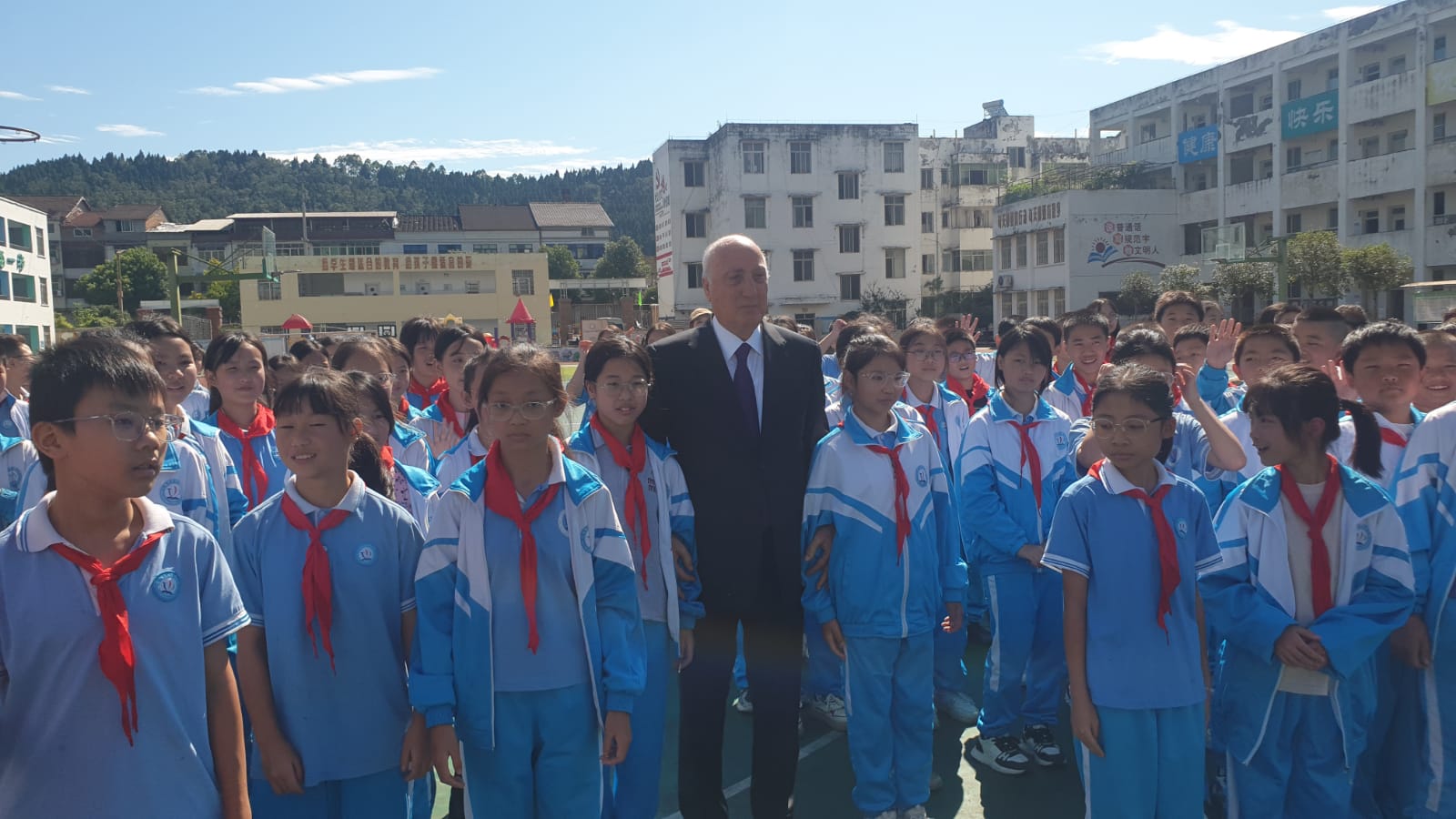 Məktəbdə keçirilən görüş zamanı Zakir Fərəcov şagirdlər və pedaqoji kollektivlə səmimi söhbət aparıb, Azərbaycan xalqının dost Çin xalqına olan hörmət və ehtiramını çatdırıb. Prezident İlham Əliyevin adından məktəbə kompüterlər hədiyyə olunub. Şəhər rəhbərliyi göstərilən diqqət və qayğıya görə Prezidentə minnətdarlığını ifadə edib və nümayəndə heyəti rəhbərindən Onun salamlarını çatdırmağı xahiş edib.